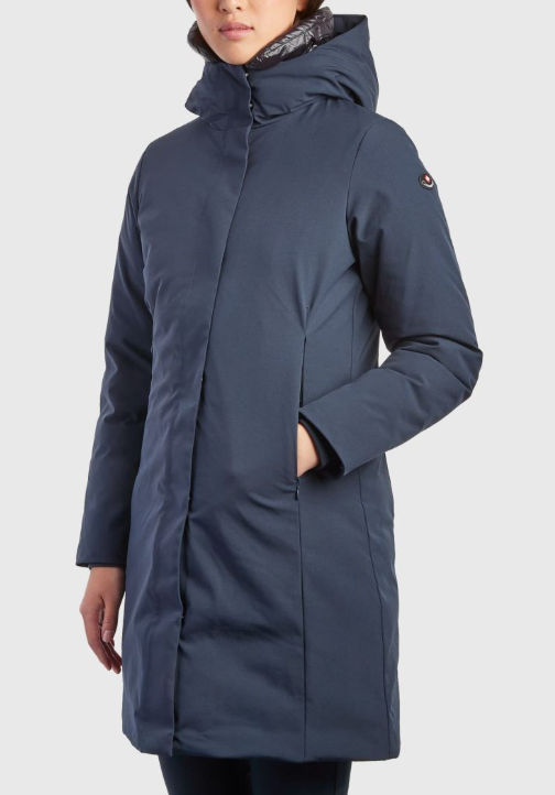 Cappotto della linea Zeropuntotech® realizzato in tessuto tecnico HidraNek® Two Way Stretch, con caratteristiche performanti, cuciture ridotte al minimo e massima protezione dalle intemperie. Questo capo possiede un livello di termicità elevato grazie alla imbottitura in piuma naturale. Il capo si presenta con un cappuccio fisso , colletto staccabile, apertura centrale con zip e automatici coperti da patta, due ampie tasche con zip ai lati e all'interno della giacca una tasca portadocumenti.