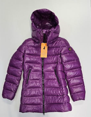 Piumino dalla line sfiancata in tessuto riciclato effetto laccato antivento. Collo alto e cappuccio staccabile. Chiusura a cerniera a doppio cursore. Tasche laterali inserite in cucitura e patch logo in gomma cucito sul petto. Indice di calore: Warm.