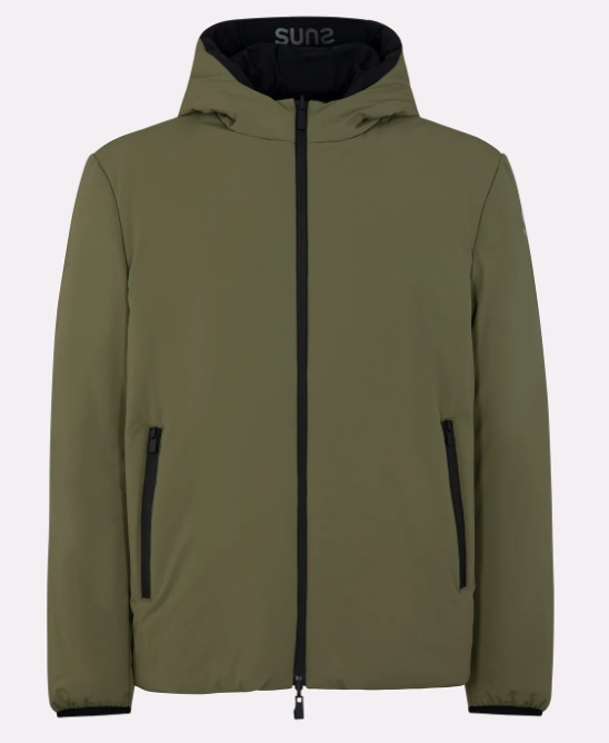 Giubbotto reversibile da uomo pensato per offrire comfort, protezione e stile durante l’inverno. Il tessuto in nylon tecnico garantisce resistenza e leggerezza, mentre il design double-face consente di variare il look a seconda delle esigenze. Il cappuccio fisso protegge efficacemente dal vento ed è impreziosito da un inserto in gomma con logo Suns applicato sul retro. Dotato di zip waterproof con doppio cursore e tasche laterali con chiusura a zip su un lato, questo modello unisce funzionalità e design contemporaneo. L’imbottitura leggera è ideale per affrontare le basse temperature mantenendo una vestibilità comoda.