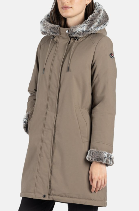 Parka realizzato in tessuto Hidra Nek Cotton 5.5, un mix di cotone e nylon dalle caratteristiche altamente tecniche. Il capo é foderato internamente con ovatta termica ecologica per il massimo della protezione. Audry 3.1 si presenta con un'apertura centrale con zip doppio cursore e finta con bottoni metallici, tasche foderate in morbido fleece, interno giacca in pelliccia eco fur, ed infine un ampio cappuccio per ripararsi dalle intemperie.