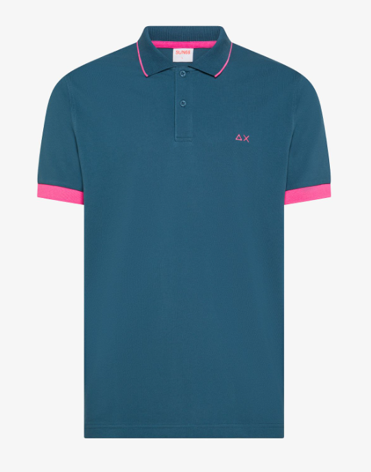 SUN68 Polo uomo con bordi fluo in cotone blu navy