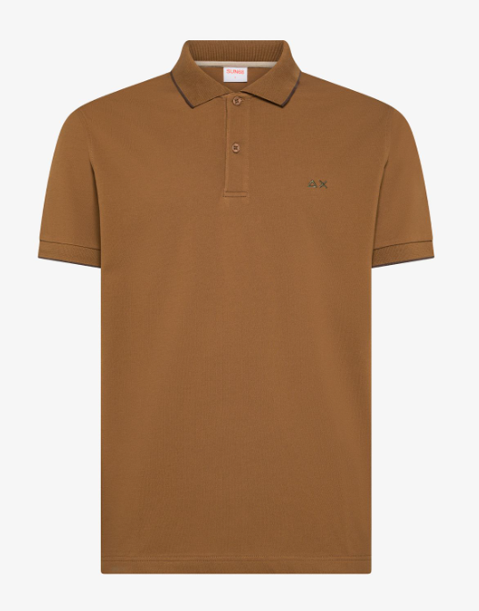 SUN68 Polo uomo con dettagli a contrasto in cotone marrone volpe