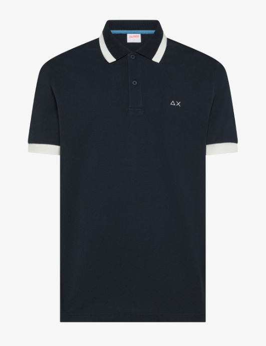 SUN68 Polo uomo con bordi fluo in cotone blu navy